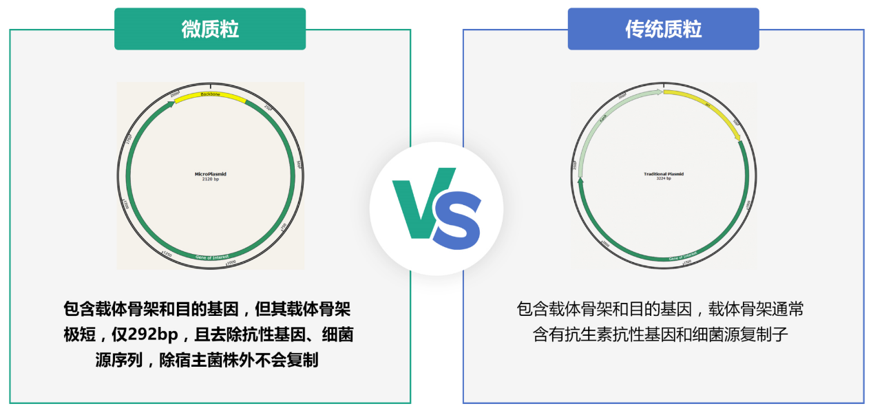 通用生物深耕基因合成與質(zhì)粒制備領(lǐng)域多年,在原有微環(huán)(Minicircle)構(gòu)建技術(shù)基礎(chǔ)上迭代升級,推出成本更優(yōu)、安全更可靠、適配性更廣的微質(zhì)粒(MicroPlasmid)構(gòu)建服務(wù)。 開發(fā)的微質(zhì)粒(MicroPlasmid)——載體骨架僅292bp,不含抗生素抗性基因,不引入抗生素,去除 CpG 島等細(xì)菌源序列,免疫原性與細(xì)胞毒性更低,更安全;不在非生產(chǎn)菌株中復(fù)制,轉(zhuǎn)染效率、轉(zhuǎn)錄水平顯著提升;延續(xù)傳統(tǒng)質(zhì)粒大規(guī)模制備優(yōu)勢,純度高,量產(chǎn)便捷,成本可控。